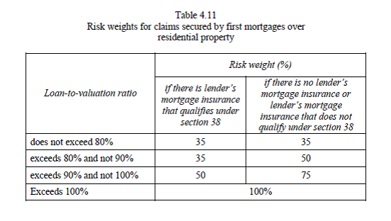 For loans with an LVR of less than 80 per cent, the risk weight is 35 per cent