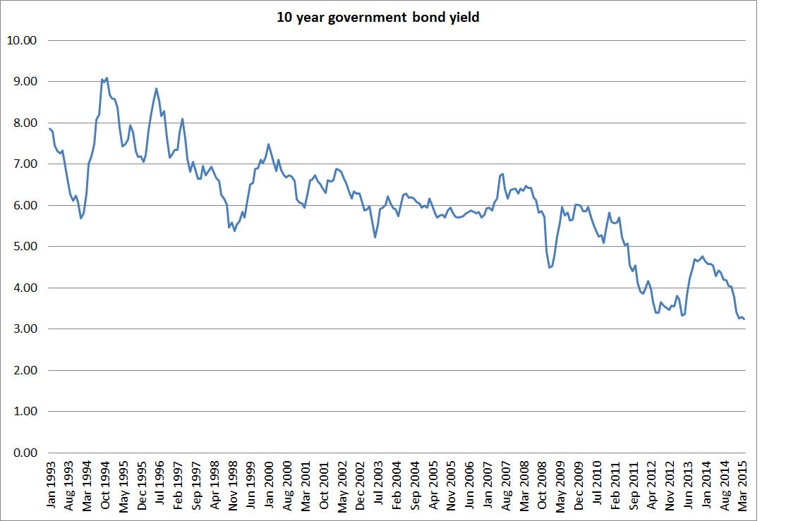 Finally, the Bank partly justifies its targeted intervention in Auckland, against one class of potential buyers, on the basis of rental yields in Auckland.  They argue that rental yields in much of the rest of the country are around 10 year average levels, but are at record lows in Auckland.  But has the Bank looked at a chart of New Zealand bond yields recently?  New Zealand 10 year bond yields are now at the lowest level probably ever (and certainly in the 30 years on the Reserve Bank’s website).  And the market now expects that the Bank will have to cut the OCR not raise it.  Shouldn’t we expect rental yields to bear some relationship to yields on alternative investments, such as long-term government bond yields.  Of course, the Bank would no doubt defend its stance by reference to the abnormally low level of bond yields globally.  And it is true that they are very low  (while NZ’s remain high by cross-country comparison), but the Reserve Bank –  even more than its overseas counterparts –  has been getting the future path of interest rates wrong for six years now.  Perhaps they will be right this time, but why should we be confident that they know better than the market?