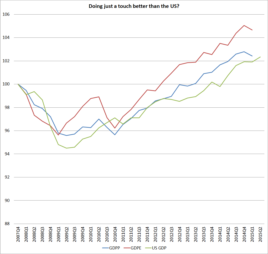 If the GDP(E) line, as it currently stands, were to prove to be the final story, we might end up taking a little comfort that we had done a little better than the US over this period.  As it is, for now I’m sticking with emphasising the cumulative similarities in GDP per capita paths rather than the differences.  And if we had crept a little ahead in the last year or two, the chances of maintaining that lead don’t look overly good right now.