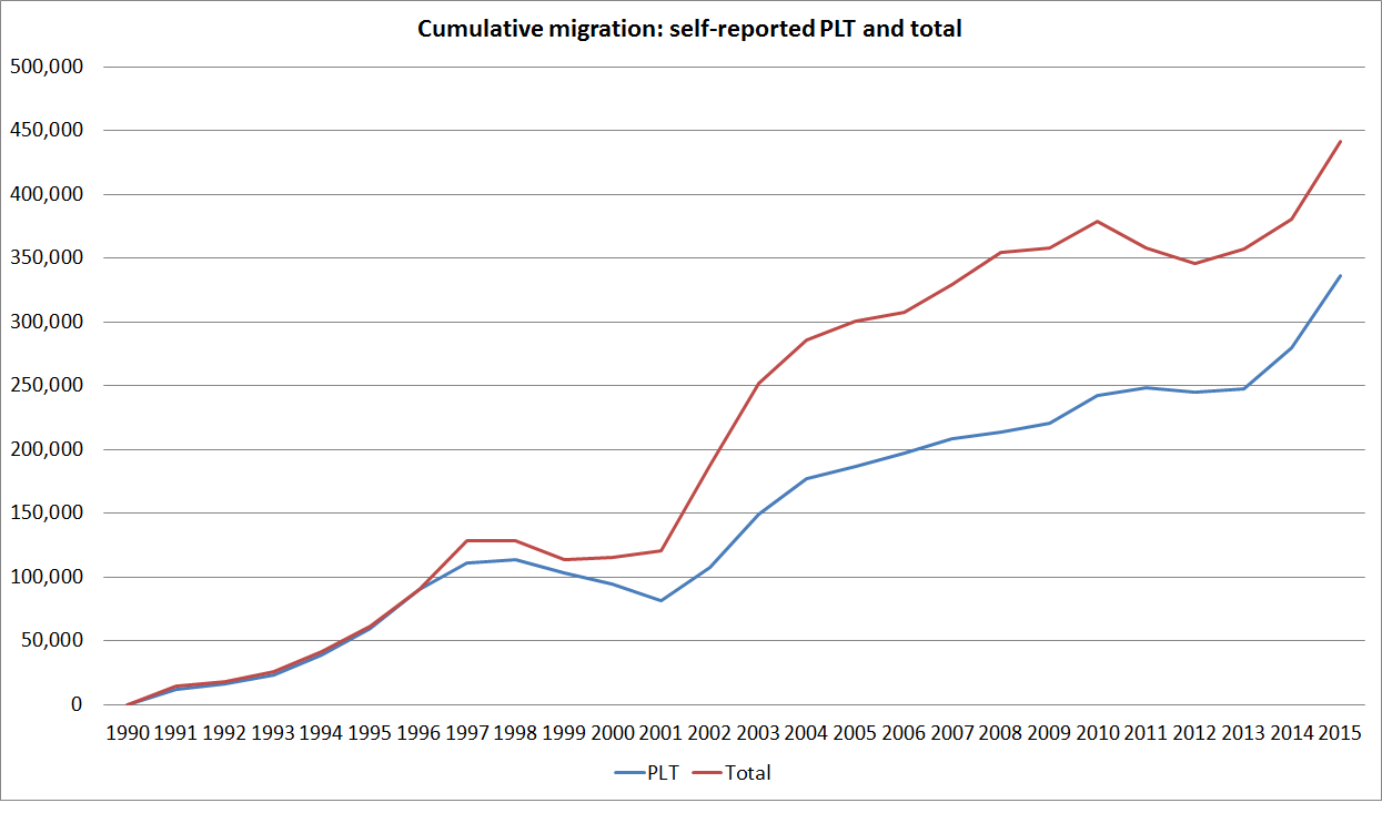 I found the Minister’s speech rather unimpressive. The organisers described it as a “keynote” but it was anything but. Unfortunately, I can’t quote from it, but suffice to say he appeared unimpressed by anyone – be it the Herald, or perhaps even stray bloggers (with long-outstanding OIA requests in for departmental advice on immigration targets) – suggesting that waves of migrants were putting pressure on resources or infrastructure. A keynote actually addressing some of the issues might have been interesting. And although the Minister and MBIE seem keen to remind people of the weaknesses of the PLT immigration data, they omitted to point out that in recent decades net PLT immigration has understated (not overstated) the net number of people coming to New Zealand.