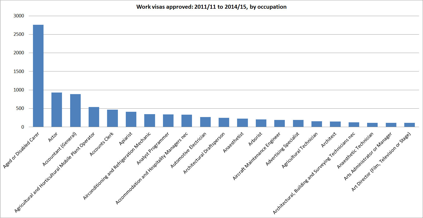 In my macroeconomic arguments about the effects of immigration, I have tended to assume the best about the make-up of the immigration programme itself – that it was bringing in mostly well-qualified people. I was willing to concede that there might be some skills gains, but to argue that these were probably outweighed by the macroeconomic pressures (on real interest and exchange rates). But people keep pointing out that even the skills gains are not as clear one might like to think. Apparently, we’ve given 20000 work visas for chefs in recent years. And Fry points to formal studies showing how disconcertingly long it takes many similarly-qualified immigrants to reach New Zealand native earnings. And, as the Treasury papers show (page 26), over the three years to 2013/14 only around half of permanent residence approvals were to people under the “Skilled/investor” heading (while more than 10 per cent were for the parents of New Zealand citizens or residents).