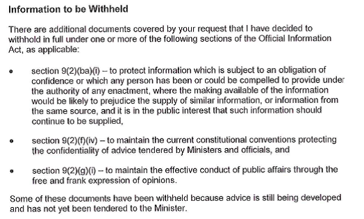Fortunately, the Treasury generally takes a more accommodative approach to Official Information Act requests. There are plenty of things about The Treasury that I am critical of, but they seem over the years to have displayed considerably more respect for the spirit of the Official Information Act and its role in New Zealand’s system of governance. When the Reserve Bank refused my request for governance papers, I lodged a very similar request with The Treasury.
