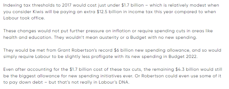 So far, so positive, although do note that all these proposals involve turning back the policy clock to 2017. National was the government then, so no doubt they look back fondly on that time. But our structural economic performance (productivity growth, business investment etc) wasn’t much chop then – as Labour then used to point out, before becoming indifferent to such trifles when in office, and implementing policies – and running into circumstances – that are likely to have made things worse.