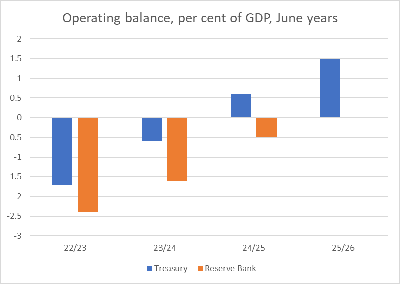 And given where we are now – which is not a good place – if they manage to deliver core inflation next year at 2.6 per cent (as in the projections) I’d probably count that as quite a reasonable outcome: still some way from the 2 per cent they are required to focus on, but at least comfortably back within the target range. It would be much more acceptable than the persistently high inflation forecast track The Treasury published last week (but finalised two months ago).