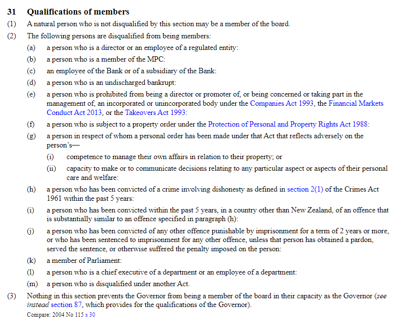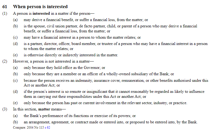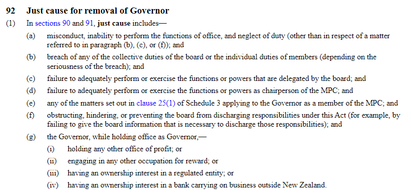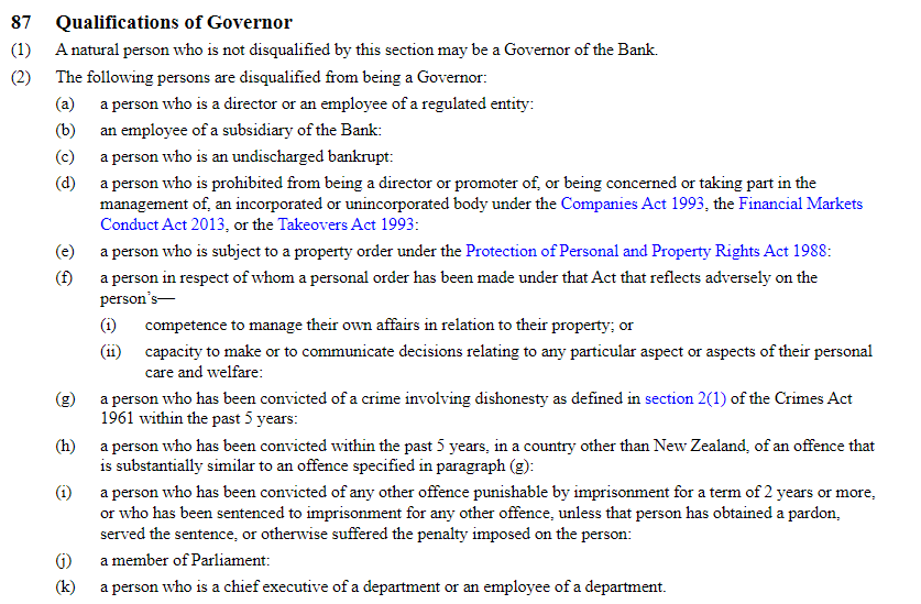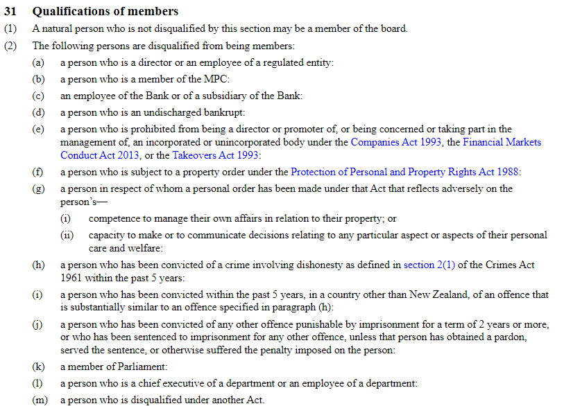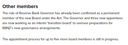 For 32+ years, taxpayers have paid a Board to (come for lunch and the cocktail do and) monitor and hold to account the Governor (and more latterly the MPC). They controlled who could be appointed as Governor and to the MPC, and – consistent with those accountability responsibilities – could recommend dismissal. The rules and responsibilities have changed a bit over time. For the first decade or more, the Governor chaired the Board, and even though there was a non-executive directors committee that was supposed to do the holding to account, the messaging implied by the structure wasn’t exactly crystal clear. And it wasn’t until about 20 years ago that the Board was required to make its own (public) Annual Report, but even then not very much changed – and consistent with that general observation, the Board’s report was buried in the midst of the (Governor-controlled) Bank Annual Report and was given no publicity when the Bank released its Annual Report.