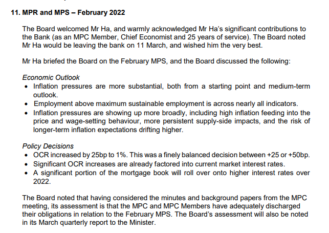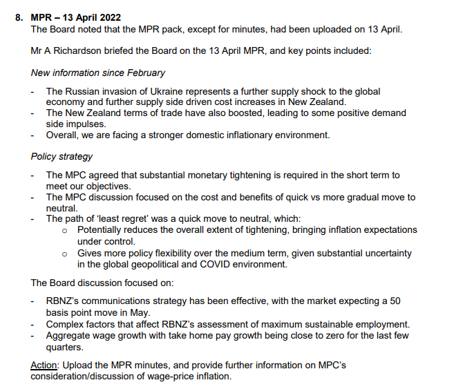 That should be unacceptable: the Governor and MPC are statutorily accountable via the Board, and the idea that management might refuse to supply information to the Board because the Board’s report – even with some redactions – to the Minister might be released (with some lag) should have been unacceptable. But we needn’t worry that there might be anything very revealing in such a report: take a look at the March Board extract above, and you’ll see they record there that they were going to tell the Minister all was fine.