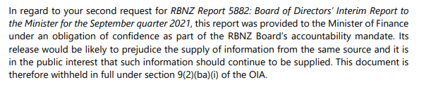 Now, it is always possible that there are secret unrecorded discussions (in breach of the Public Records Act). The other OIA requester asked for a copy of one of the Board’s reports to the Minister, which the Board/Bank adamantly refused to release