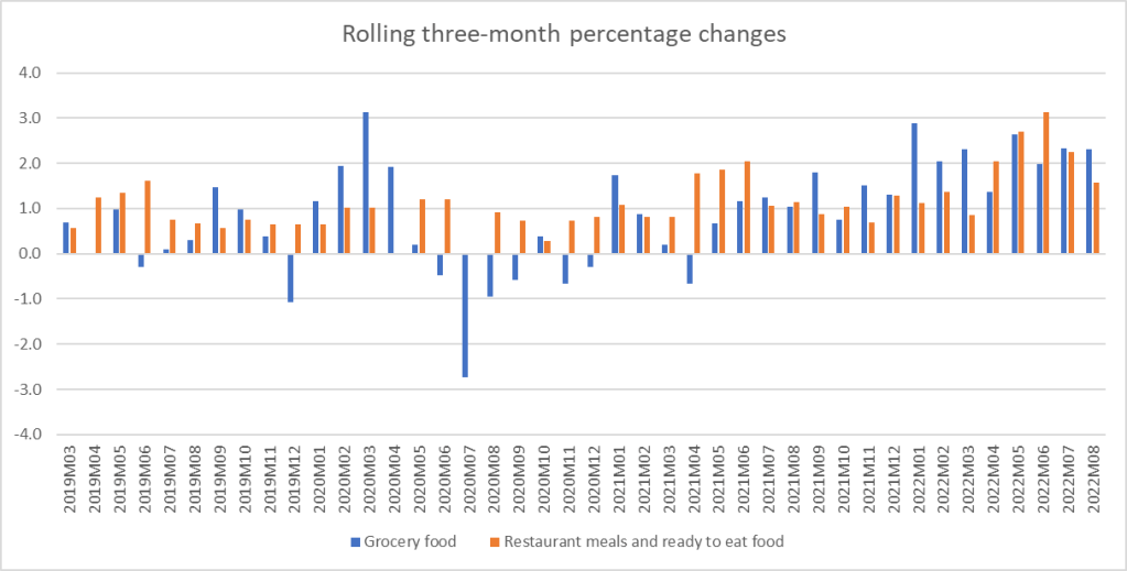 There are a few potentially useful official monthly series. I’ve long kept an eye on these two from the Food Price Index