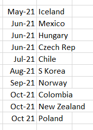 On several occasions in the past on Twitter I’ve used the BIS’s monthly data on policy interest rates. Of the countries there that are on either the OECD or IMF lists, these were the first countries to raise policy interest rates in 2021.