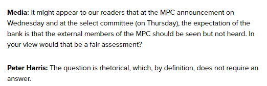 As far as I can see none of the questions on monetary policy itself went beyond the sort of thing the internal MPC members were answering in their recent interviews. The journalist pushes back