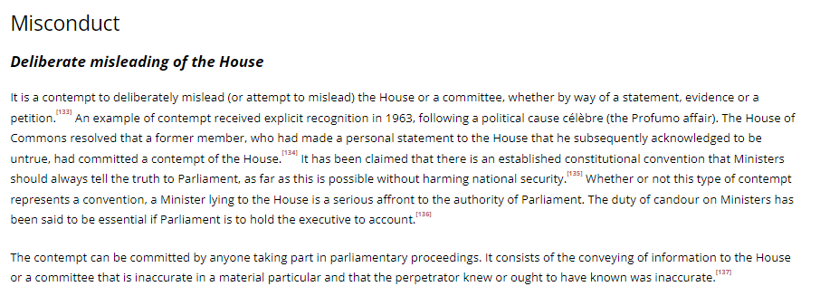 Legislatures typically take a dim view of efforts to mislead them or their committees. This is from our own Parliament’s online “How Parliament works”