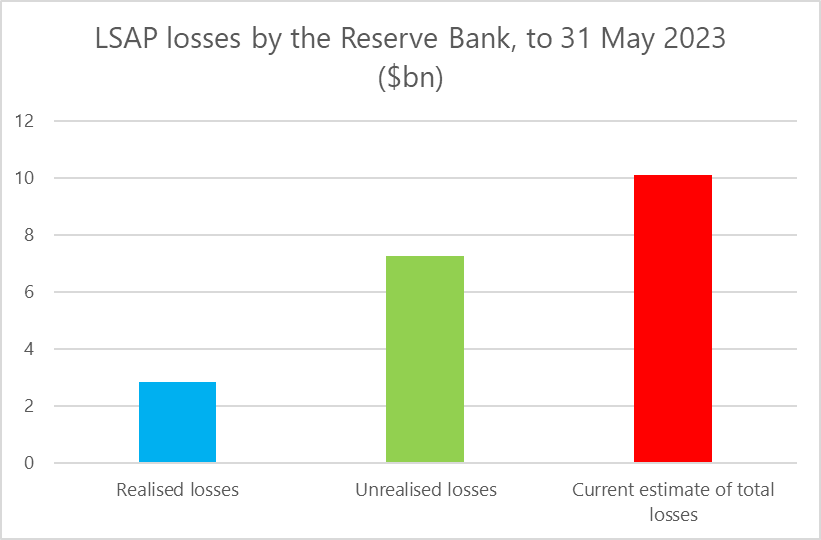 $10 billion of so of losses of taxpayers’ money as a result of Reserve Bank MPC choices around the LSAP programme, choices that had the imprimatur of the Minister of Finance (and apparently no objection from the Treasury). As the bonds are being sold back to The Treasury, the realised component of the losses is mounting significantly each month ($317m in indemnity payments were made to the Bank last month), but total estimated losses hang fairly steadily around $10 billion.