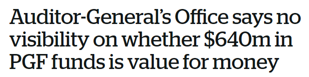 There was an article in the Herald the other day about the Auditor-General having reviewed aspects of that great Labour/New Zealand First boondoggle, the Provincial Growth Fund. This was the headline