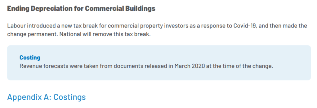 No rationale at all beyond claiming it was a “tax break”. They rightly pushed back when Labour called interest-deductibility a tax break – it wasn’t, business operating expenses are generally deductible – and depreciation is no different. (Arguably, simply calling it a tax break is no worse than Labour pretending the 2020 change as a temporary Covid stimulus measure when they were quite clear at the time it was permanent, but…..it is a close call. Our political parties………)