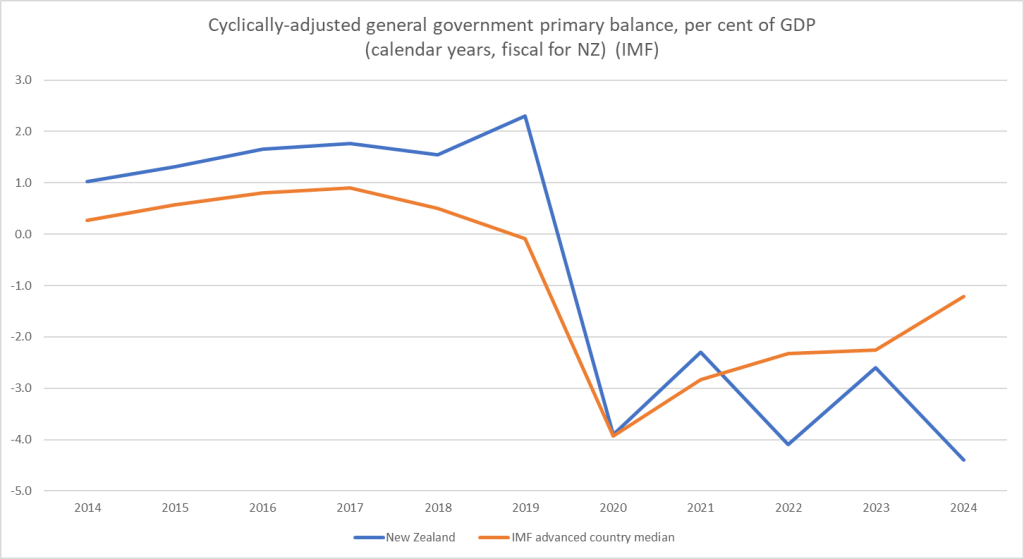 There is also a (paywalled) Newsroom article this morning [paywall now lifted here] on Quigley, explicitly questioning his ability to keep holding the Reserve Bank job. I don’t think Quigley is a political partisan (National or Labour) – and he has had roles from both National and Labour governments – but he again displays a serious lack of judgement and tone-deafness (of the sort that was on display when he finally got one of his RB Board members to step down from an insurance company directorship, not because having such a role was a terrible look but because the OIA might lead to some scrutiny, or had never raised a concern at the government appointing the chair of Kiwibank’s then owner to the board of the bank regulatory agency). He can’t match the Governor for lowering the standing and reputation of the Bank – but then for the Governor it is a fulltime job – but it is a pretty consistently poor and damaging record.