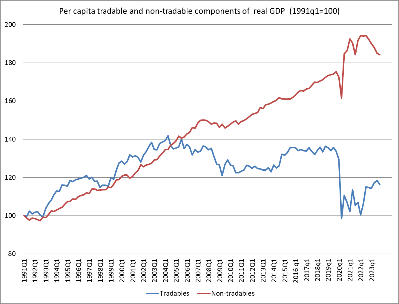 This increased inward-looking nature of the New Zealand economy – across successive governments – gets very little attention in The Treasury’s document.