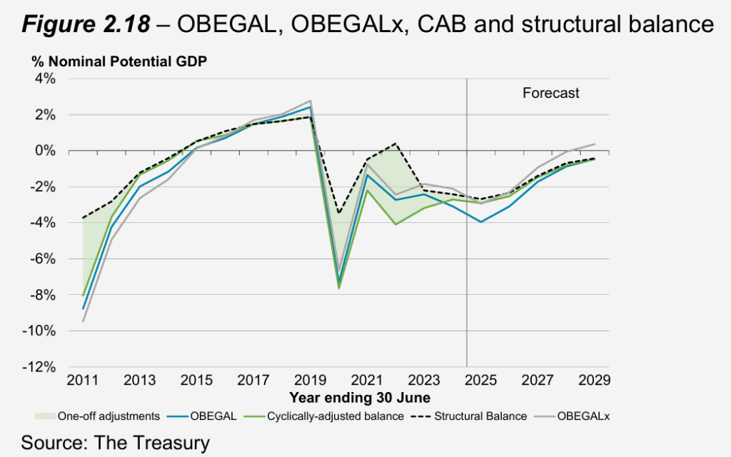 As a reminder of the broader fiscal position, here is Treasury’s chart showing the estimated cyclically-adjusted and structural deficits.