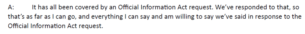 The fourth limb of my request covered any material of substance relating to Funding Agreement negotiations from 1 December until the date the Cabinet paper was lodged (1 April as it turns out). I’d narrowed the timeframe because I’d assumed there’d have been initial reactions earlier (after 13 September) but what I was interested in was the stuff that had led to the blow-up with the Governor). Treasury does not directly respond to this limb of my request either, but lists another paper soon to be released, dated 13 March (ie post Orr), a formal Treasury Report on funding agreement issues. And that is all. If Treasury’s responses are at least approximately truthful, it seems that they were very late in getting onto this set of issues (either future Funding Agreement bid, with its artificially high purported baseline, or the 24/25 budget itself, which had blasted through the then Funding Agreement limits).