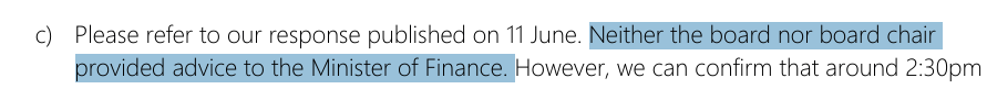 On the first, it seems that there was no additional analysis or advice internally, and certainly nothing documented outlining any concerns as to what the Bank might be up to or suggesting (say) that they should insist that the Minister was alerted to the planned budget for 24/25. There is no sign in any of the material that Treasury was even aware of the scale of the planned spending blow-out, let alone suspicious of how such a blowout might be used to try and leverage more resources in the forthcoming Funding Agreement bid.