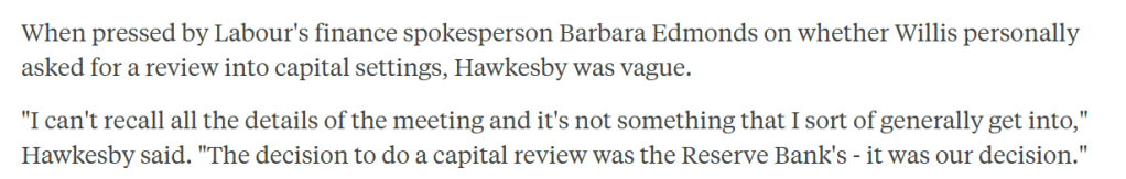 I am loathe to accuse Treasury officials of playing fast and loose with the Official Information Act, but in this case it is hard to believe I have been given a straight answer. Why? Because we have the written words of the former Governor to his senior leadership team, cc’ed to the Board chair and deputy chair. This, from 5 February, is from the Bank’s 11 June release