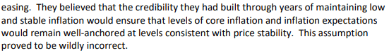 The first is “Central banks became over-confident in their inflation targeting frameworks”.