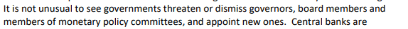 which is probably true in some less developed countries, but do they have any examples in mind in advanced economies or New Zealand? I think not. In New Zealand, MPC members have been reappointed with no scrutiny, and politicians – government or Opposition – seem reluctant to focus on the central bank’s part on the inflation outcomes. There is no sign of any serious pressure on the Bank – not even much sign Grant Robertson cares much. Look at the underwhelming crew he just appointed to the Reserve Bank board – not evidently partisan, just deeply inadequate to the task (including holding the Bank and MPC to account).
