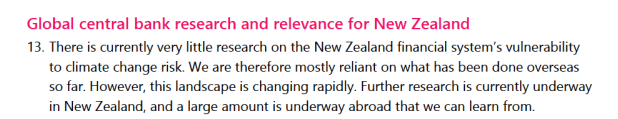 To be clear, I don’t think the Reserve Bank should be spending lots of scarce taxpayers’ money (well, not scarce to them given how lavish their funding now is) on modelling climate change risks, at least not without a great deal more serious robust international analysis suggesting that there was a substantive issue/risk emerging. But it is the Reserve Bank that holds forth on the issue, asserting the existence of a threat….and, it appears, it has done almost no work itself, in a New Zealand context, to support its handwaving.