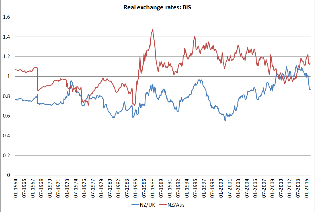 And there is a difference between short-to-medium term perspectives and longer-term ones. In the short-to-medium term, all else equal, floating exchange rate countries will tend to have more variable real exchange rates than other countries. In the longer-term, real structural forces will out. We had some pretty large adjustments in the last two decades of our fixed exchange rate era. Often it was good that we did. When the terms of trade fall (rise) sharply, a substantial drop (increase) in the exchange rate can be a useful part of how the economy adjusts to that change in fortunes.