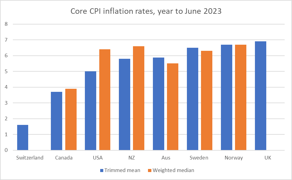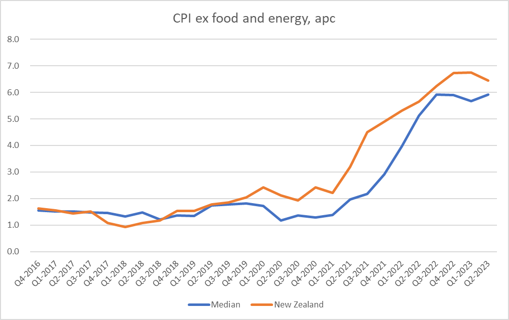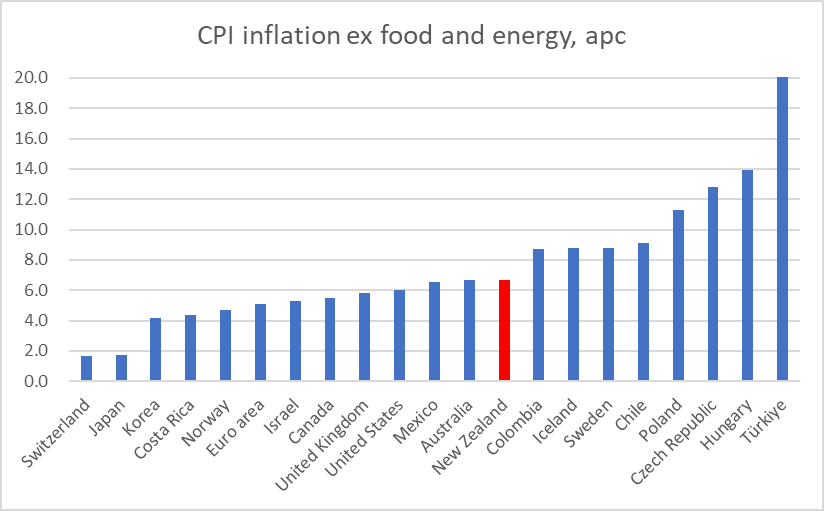 - as yet, there is no sign that core inflation in New Zealand is falling (and even if one measure it might be lower than the early 2022 peak there is no sign it is still falling now). That is a quite different picture from some other advanced countries (notably the US and Canada, but also Australia).