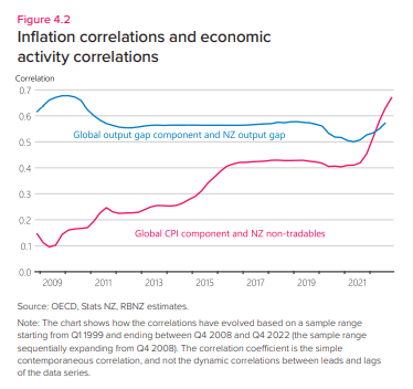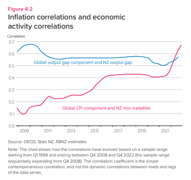 Bear in mind too that whereas past New Zealand tightening cycles have typically seen total interest rates rises similar to what we’ve seen to date (a) the scale of the required reduction in core inflation is greater than anything we’ve needed to achieve for 30+ year, and b) unlike typical New Zealand tightening cycles there has been no support from a higher exchange rate.