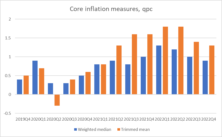 Bear in mind that with core inflation around 6 per cent and the Bank’s target requiring them to focus on the 2 per cent target midpoint, there is a very long way to go. It isn’t a matter of getting core inflation down by 0.5 or 1 per cent, but of a four percentage point drop.