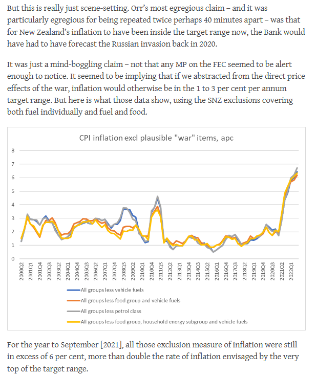 In the comments Bryce Wilkinson points us to this. Having been in the weeds in 2007 I’m not convinced that on the information we had at the time an OCR of 10% was needed in Dec 2007. That said, an OCR of 4.3% in February 2022 would have been much better than policy as actually delivered. And note that an 8% OCR now would be close to the 2007/08 actual peak (as many other countries’ policy rates now are). Food for thought.