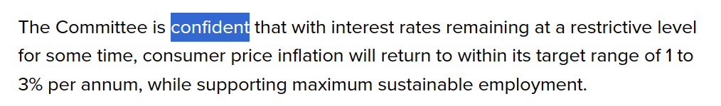- The MPC asserted at their last review that they were “confident” that they had done enough. Neither those words, nor the idea, appear in the recent statements of any other central banks, and our MPC offered no reasons for their confidence.