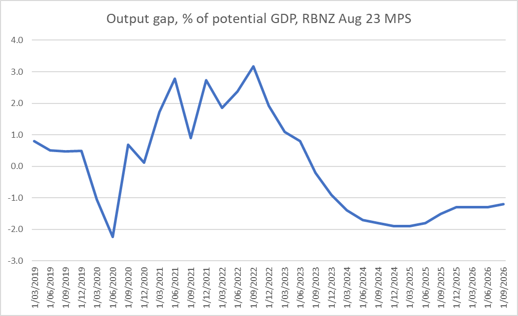 You might easily forget reading that that the way our system is set up the Reserve Bank moves last. If the economy overheated – and on everyone’s reckoning it did (both IMF and Reserve Bank positive output gap estimates were very large) – it is the MPC’s fault. It is their job to, as far as possible, lean against the economy overheating (or the opposite) and keep core inflation near the target midpoint. They failed, and that is on them not on the government of the day (which might have run bigger deficits than many were comfortable with, but those deficits weren’t kept secret – most especially from the MPC). Whether or not the LSAP made much difference to demand (Conway believes it did), the responsibility clearly rests with the overall package of monetary policy measures – OCR setting, LSAP, and the Funding for Lending programme (that went on offering cheap loans to banks until the end of 2022). There is no sign in his speech, press release, or interview that Conway – and presumably his bosses – ever really accept that responsibility/blame. Nor is there any real mention of what was actually at the root of the problem: an egregious forecasting failure. Like many/most other forecasters – but unlike them actually wielding power and responsible for outcomes – the MPC badly badly misread the state of demand and resource pressures through Covid, and the result was the inflationary mess that followed. It was hard to get right – few did – but when you take the role you need to take the responsibility. All too few central bankers have. Conway wasn’t there when the worst mistakes were being made, but he now speaks for the institution (and, currently, specifically for Hawkesby, who held the critical role of DCE responsible for monetary policy when it mattered).