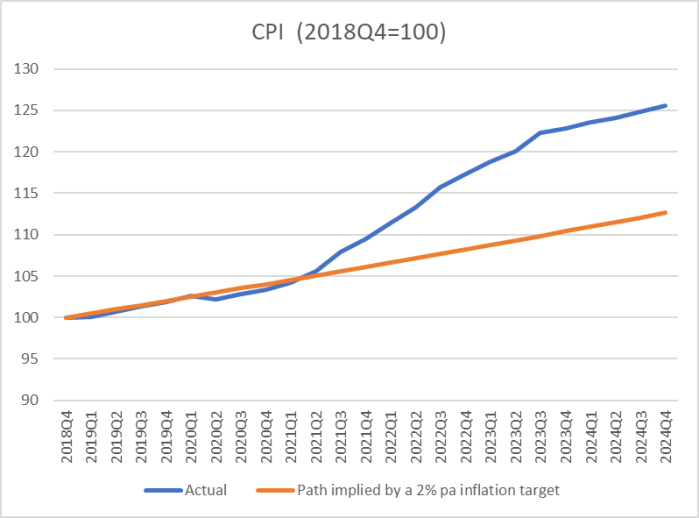 18 months ago they thought the OCR – which they set – would be around 5 per cent by now. Yesterday they actually set that rate at 2.25 per cent (and I could show you similar charts for various market economists, so again this is not about bagging our specific group of MPC members). Sometimes of course really nasty exogenous shocks happen: it would be unfair to look at MPC forecasts from early 2019 and compare them with what happened in 2020, since Covid was essentially unforeseeable (for central bankers in particular). But nothing very dramatic has happened in or to New Zealand in the last eighteen months. The Bank simply misread how much pressure would be needed to get core inflation near target.
