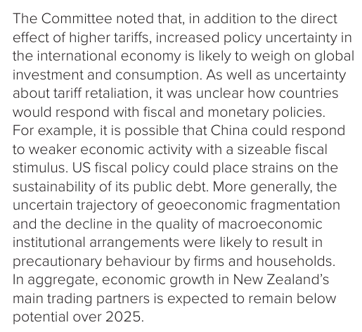 But I’m sceptical that the (very real) heightened uncertainty around foreign tariff policy had anything much to do with the overall performance of the New Zealand economy in the June quarter. There simply aren’t any particularly obvious channels by which there would have been such effects. We weren’t Canada (directly in Trump’s firing line for a while), we weren’t subject to unusually large proposed tariffs (and our government was fairly clear they didn’t support retaliation), we weren’t likely to be facing higher prices (if anything lower, if large scale trade diversion happened), and while uncertainty can be a killer for investment projects few/none will turn on a dime (in terms of actual real outlays) anything like that quickly. None of which is to say that Trumpian tariffs are anything but bad for the world, and us (and I’ve consistently agreed with the RB view that they are, if anything, a negative aggregate demand shock from the rest of the world to us).
