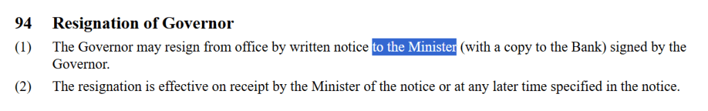 But it would make a lot more sense if the Minister of Finance had been the one initiating/prompting the actions that led directly to Orr’s “personal decision” to resign.